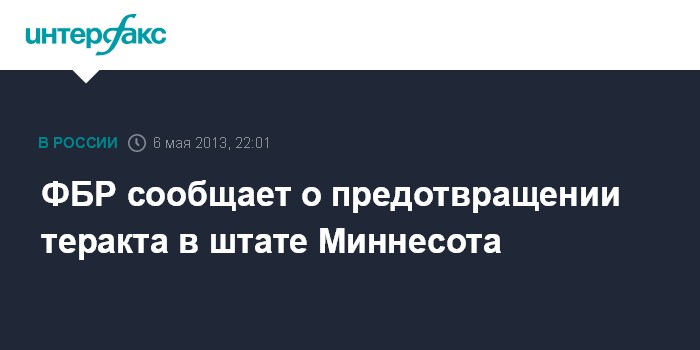 Вашингтон. 6 мая. INTERFAX.RU - Сотрудники ФБР и полиции США арестовали подозреваемого в подготовке теракта в штате Миннесота на севере страны, говорится в заявлении ФБР, опубликованном в понедельник.