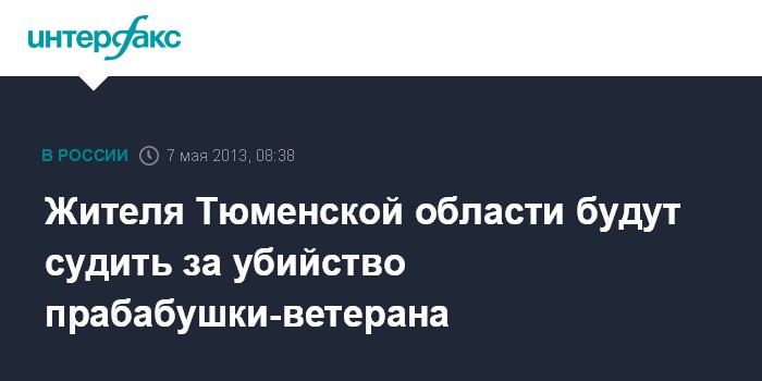 Тюмень. 7 мая. INTERFAX.RU - Прокуратура Тюменской области направила в областной суд уголовное дело в отношении жителя Ярковского района Егора Ткачева, который обвиняется в убийстве своей прабабушки, труженицы тыла.