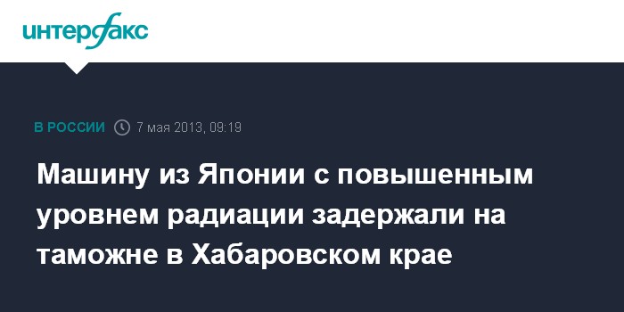 Управлением Роспотребнадзора по Хабаровскому краю в Ванинском и Советско-Гаванском районах принято решение о запрете ввоза в Россию "фонящего" автомобиля.
