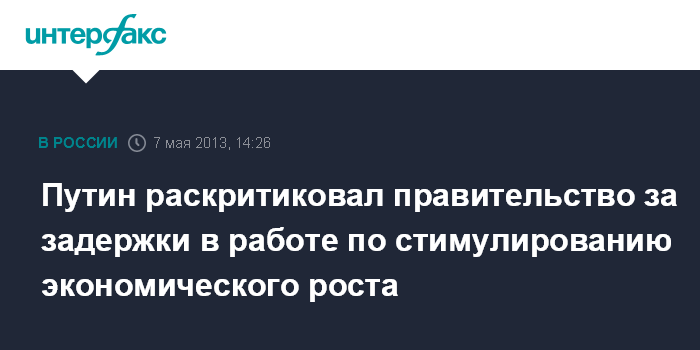 Москва. 7 мая. INTERFAX.RU - Президент России Владимир Путин раскритиковал кабинет министров за задержки в реализации мер, направленных на стимулирование экономического роста, укрепление производственного потенциала и улучшение делового климата в России.