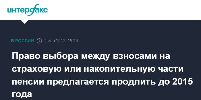 Право выбора между взносами на страховую или накопительную части пенсии предлагается продлить до 2015 года