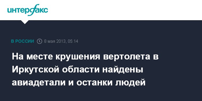 На месте крушения вертолета в Иркутской области найдены авиадетали и останки людей