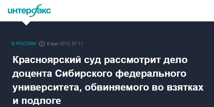 Красноярский суд рассмотрит дело доцента Сибирского федерального университета, обвиняемого во взятках и подлоге