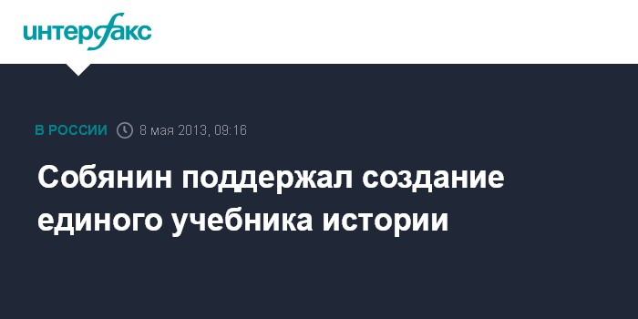 "Впрочем, единый учебник не означает - единственный. Должны быть разные учебники - для базового уровня обучения, для профильной школы, для коррекционной школы. Должна быть возможность выпускать и апробировать экспериментальные учебные пособия. Тем не менее, все эти учебники должен объединять общий взгляд на историю страны", - считает Собянин.