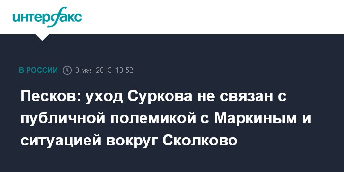 Он ответил на вопрос о том, связан ли уход Суркова с публичной полемикой между ним и Маркиным, а также с ситуацией вокруг "Сколково".