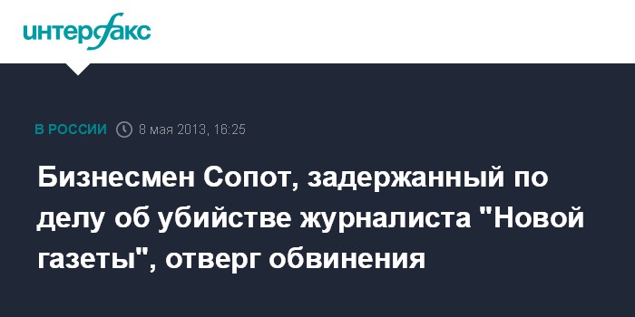 Бизнесмен Сопот, задержанный по делу об убийстве журналиста "Новой газеты", отверг обвинения