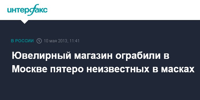 "Сегодня около 11.00 на пульт "02" поступило сообщение о разбойном нападении на ювелирный магазин, расположенный на улице Бутырская, дом 86 а. По предварительным данным, в помещение вошли пятеро неизвестных в масках, угрожая предметом, похожим на пистолет, похитили ювелирные украшения и скрылись", - сказал представитель пресс-службы.