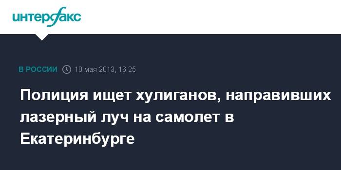 Екатеринбург. 10 мая. INTERFAX.RU - Полиция в Свердловской области ищет хулиганов, которые в ночь на пятницу направили лазерный луч на кабину пилота пассажирского "Боинга", который заходил на посадку в аэропорт "Кольцово" в Екатеринбурге, сообщает пресс-служба Уральского управления на транспорте МВД РФ.