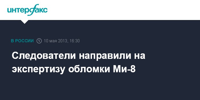 Иркутск. 10 мая. INTERFAX.RU - Следователи назначили взрыво-техническую экспертизу для определения обстоятельств крушения вертолета Ми-8 со спасателями на борту на севере Иркутской области, сообщила агентству "Интерфакс-Сибирь" старший помощник руководителя Восточно-Сибирского следственного управления на транспорте СКР Нина Калюш.