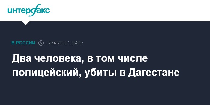 Махачкала. 12 мая. ИНТЕРФАКС–ЮГ – Два человека, в том числе сотрудник полиции, убиты в результате обстрела машины в Буйнакске, сообщили Интерфаксу СУ СКР по Дагестану.