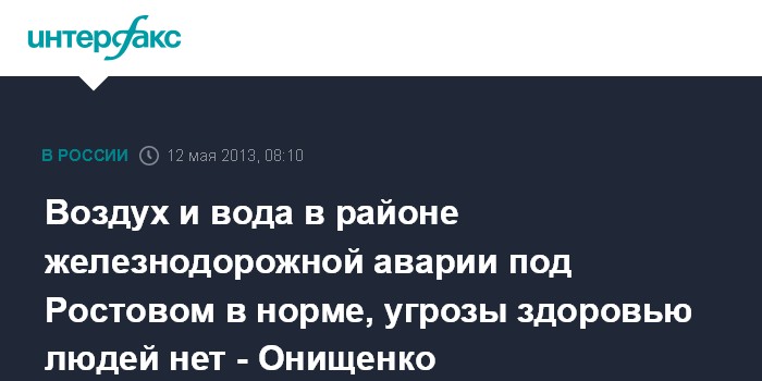 Воздух и вода в районе железнодорожной аварии под Ростовом в норме, угрозы здоровью людей нет - Онищенко