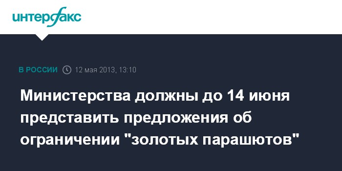 Министерства должны до 14 июня представить предложения об ограничении "золотых парашютов"
