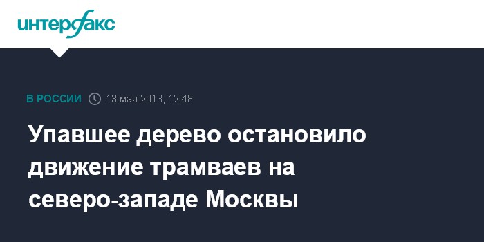 "Падение дерева произошло в районе дома 6 по Авиционной улице. В результате остановлено движение трамваев N 6, 15, 23, 30. В настоящее время к месту происшествия выехали аварийные службы префектуры северо-западного административного округа и ГУП "Мосгортранс", - уточнил собеседник агентства.