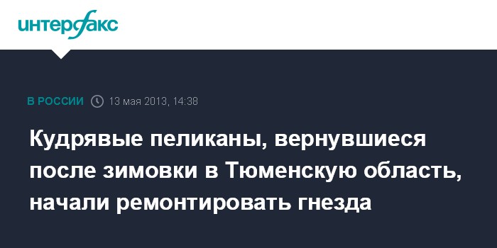 Тюмень. 13 мая. INTERFAX.RU - На озера федерального заказника Белозерский в Армизонском районе Тюменской области после зимовки вернулись кудрявые пеликаны, занесенные в региональную Красную книгу.