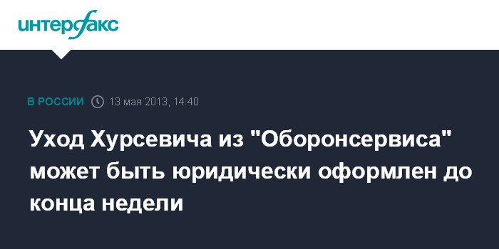 "Так называемое политическое решение об отстранении Хурсевича принято на днях на специальном совещании в Минобороны РФ, на котором рассмотривалось представление Главной военной прокуратуры. А 17 мая оно будет оформлено юридически на заседании совета директоров этого акционерного общества", - сказал один из собеседников агентства в понедельник.