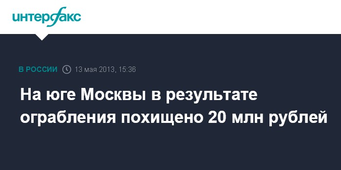 На юге Москвы в результате ограбления похищено 20 млн рублей