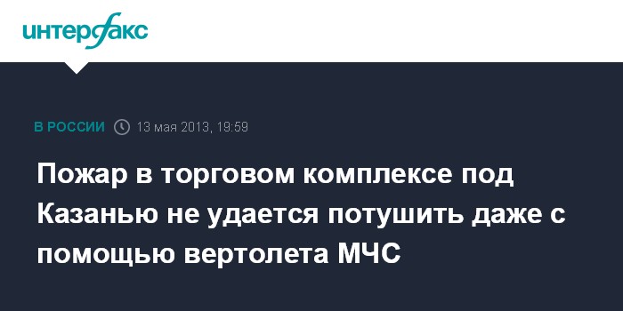 Пожар в торговом комплексе под Казанью не удается потушить даже с помощью вертолета МЧС