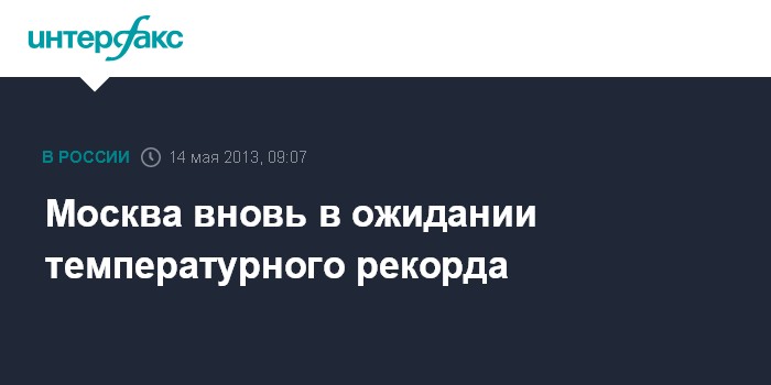 "По уточненным данным в понедельник не хватило лишь 0,3 градуса до нового рекорда для 13 мая. Вероятность установления температурного рекорда во вторник выше - в столице ожидается до 30-31 градусов жары при прежнем максимуме для 14 мая, установленном в 1996 году, в 28,4 градуса", - уточнил собеседник агентства.