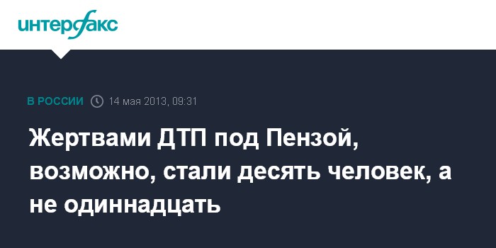 Москва. 14 мая. INTERFAX.RU - В результате ДТП в Пензенской области, возможно, погибли не 11, а 10 человек, сообщили "Интерфаксу" в пресс-центре МВД.