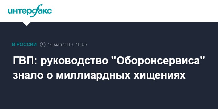 Москва. 14 мая. INTERFAX.RU - Главный военный прокурор Сергей Фридинский заявил, что руководство ОАО "Оборонсервис" не только знало о многомиллиардных хищениях в этой структуре, но и противодействовало правоохранительным органам в их усилиях по наведению порядка.