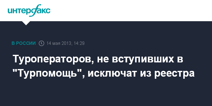 Москва. 14 мая. INTERFAX.RU - Туроператоры в сфере выездного туризма могут вступать в объединение "Турпомощь" вплоть до 15 мая. После этой даты будет подниматься вопрос об исключении не вступивших компаний из единого реестра туроператоров, сообщила Ассоциация туроператоров России (АТОР) во вторник.