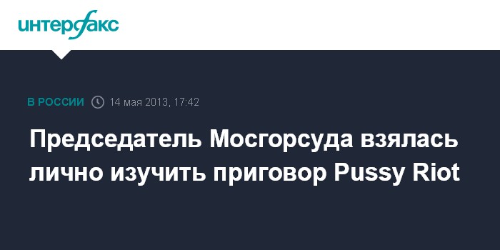 Москва. 14 мая. INTERFAX.RU - Приговор в отношении участниц панк-группы Pussy Riot затребован председателем Мосгорсуда Ольгой Егоровой из первой инстанции для изучения.