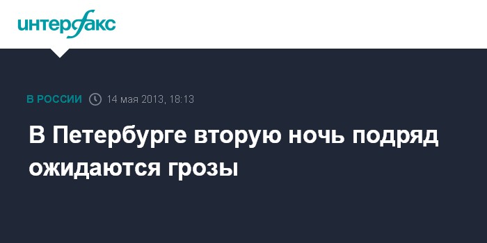 Санкт-Петербург. 14 мая. INTERFAX.RU - Ливни и грозы вновь придут в Петербург предстоящей ночью, сообщает во вторник пресс-служба Главного управления МЧС по городу.