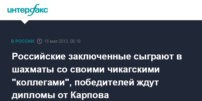 Российские заключенные сыграют в шахматы со своими чикагскими "коллегами", победителей ждут дипломы от Карпова