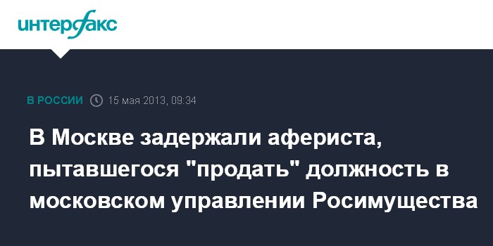 Москва. 15 мая. INTERFAX.RU - Аферист предлагал мужчине купить должность замглавы московского управления Росимущества, сообщили "Интерфаксу" в пресс-службе ГУ МВД России по Москве.