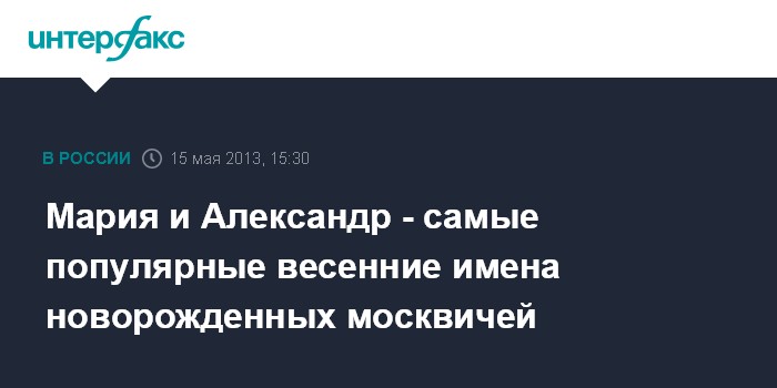 Москва. 15 мая. INTERFAX.RU - Мария и Александр возглавляют рейтинг имен, которые москвичи давали новорожденным за последний месяц, сообщили "Интерфаксу" в столичном управлении ЗАГС в среду.
