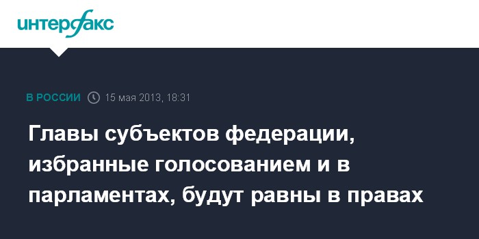 Главы субъектов федерации, избранные голосованием и в парламентах, будут равны в правах
