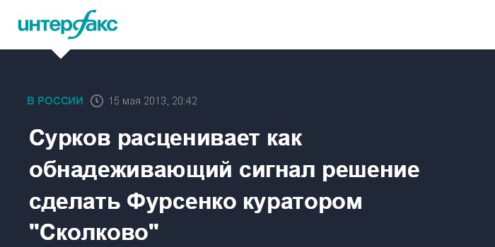 В беседе с журналистами Сурков, незадолго до отставки выступивший с речью в защиту инновационного центра "Сколково", назвал это решение "очень правильным". "Это хороший сигнал, обнадеживающий", - сказал Сурков.