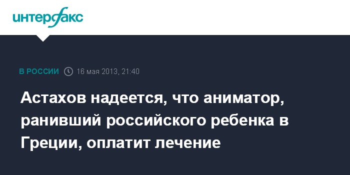 Астахов надеется, что аниматор, ранивший российского ребенка в Греции, оплатит лечение