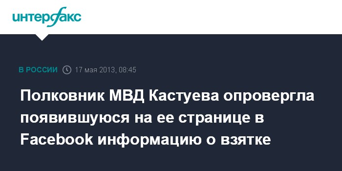 Полковник МВД Кастуева опровергла появившуюся на ее странице в Facebook информацию о взятке