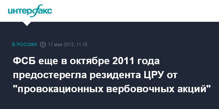 ФСБ еще в октябре 2011 года предостерегла резидента ЦРУ от "провокационных вербовочных акций"