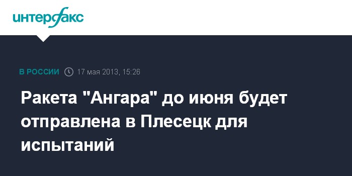 Москва. 17 мая. INTERFAX.RU - Тяжелая космическая ракета "Ангара" до июня текущего года будет отправлена на космодром Плесецк, где пройдут тестовые испытания, сообщил в пятницу вице-премьер РФ Дмитрий Рогозин.