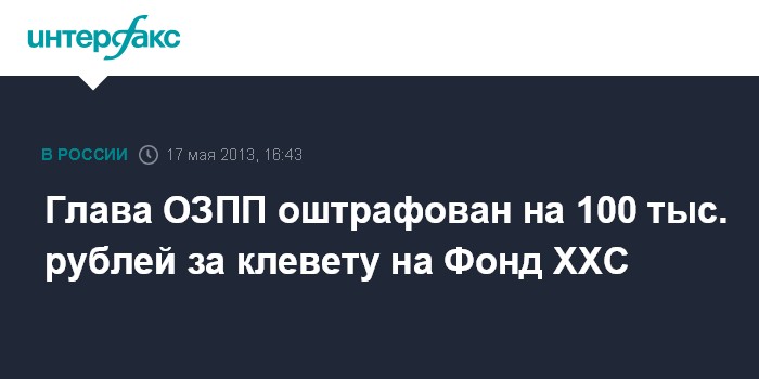 Глава ОЗПП оштрафован на 100 тыс. рублей за клевету на Фонд ХХС