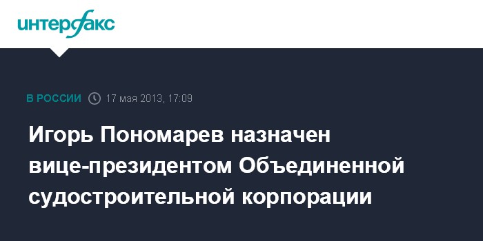 Игорь Пономарев назначен вице-президентом Объединенной судостроительной корпорации