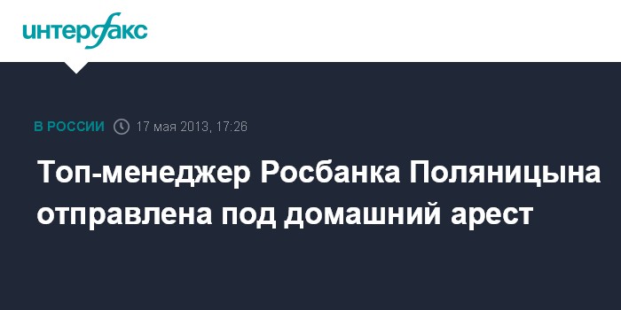 Москва. 17 мая. INTERFAX.RU - Пресненский суд Москвы поместил под домашний арест старшего вице-президента Росбанка Тамару Поляницыну, обвиняемую в пособничестве в коммерческом подкупе.