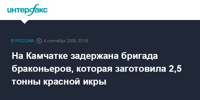 Петропавловск-Камчатский. 4 сентября. ИНТЕРФАКС-ДАЛЬНИЙ ВОСТОК - В ходе милицейского рейда на севере Камчатки задержана бригада браконьеров, заготовившая более 2,5 тонн соленой лососевой икры.