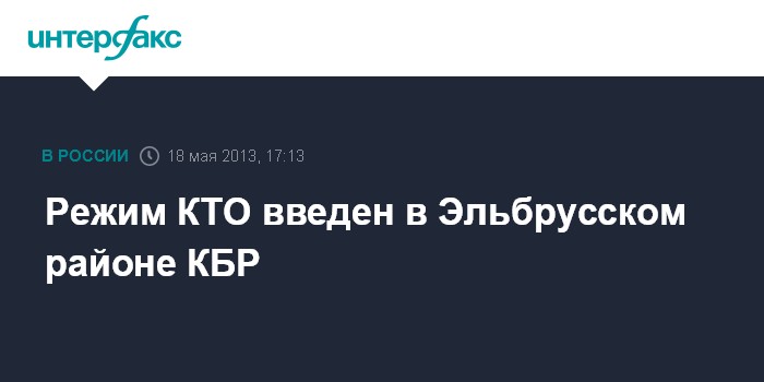 Нальчик. 18 мая. INTERFAX.RU - На части территории Эльбрусского муниципального района Кабардино-Балкарии решением начальника управления ФСБ России по КБР введен режим контртеррористической операции, сообщает оперативный штаб в КБР.