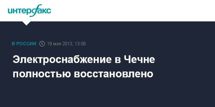 Пятигорск. 19 мая. INTERFAX.RU - Специалисты управляемого МРСК Северного Кавказа ОАО "Нурэнерго" восстановили электроснабжение в Веденском районе Чечни, нарушенное из-за технологического сбоя, сообщил агентству "Интерфакс-Юг" в воскресенье начальник департамента по связям с общественностью МРКС Северного Кавказа Виталий Струговец. "В 12:25 мск все потребители запитаны", - сказал В. Струговец.
