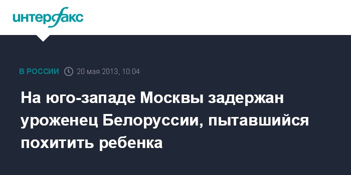 На юго-западе Москвы задержан уроженец Белоруссии, пытавшийся похитить ребенка