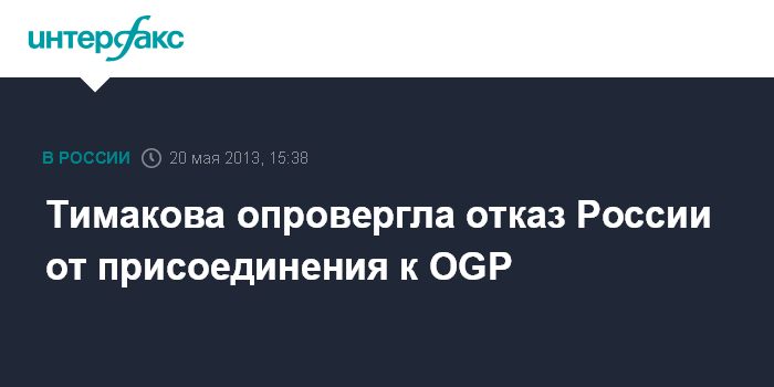 Поселок Новомихайловский (Краснодарский край). 20 мая. INTERFAX.RU - Россия окончательно не отказывается от идеи присоединения к партнерству "Открытых правительств" (Open Government Partnership; OGP), но хотела бы, чтобы при этом учитывались ее предложения, заявила пресс-секретарь премьер-министра РФ Наталья Тимакова.