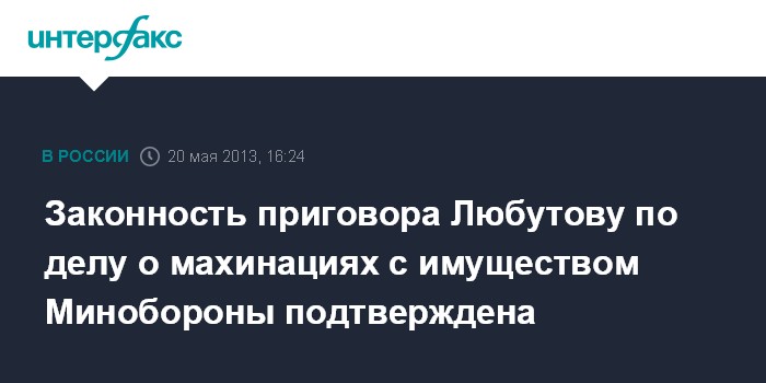 Законность приговора Любутову по делу о махинациях с имуществом Минобороны подтверждена