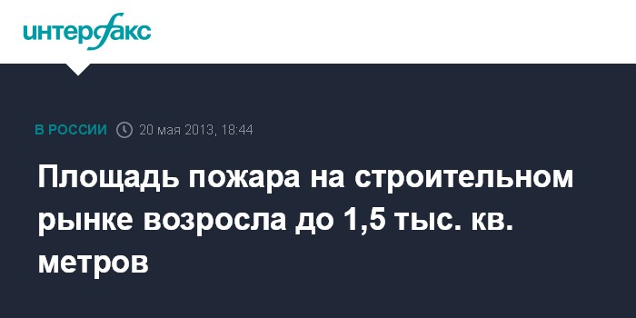 Москва. 20 мая. INTERFAX.RU - Площадь пожара на рынке "Мельница" на юго-западе столицы выросла до 1,5 тыс. кв. метров, сообщил "Интерфаксу" источник в правоохранительных органах.