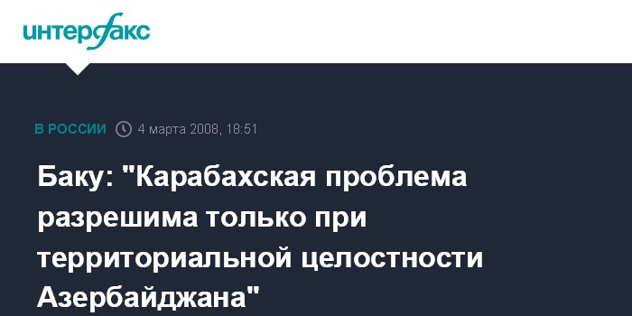 Баку: "Карабахская проблема разрешима только при территориальной целостности Азербайджана"
