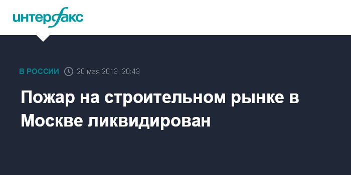 Москва. 20 мая. INTERFAX.RU - Ликвидирован пожар на рынке "Мельница" на юго-западе столицы, сообщил "Интерфаксу" источник в правоохранительных органах.