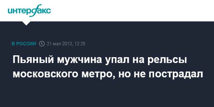 Москва. 21 мая. INTERFAX.RU - Нетрезвый мужчина остался невредимым после падения на рельсы в столичном метро, сообщили "Интерфаксу" в пресс-службе ГУ МВД России по Москве.