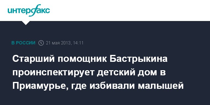 Москва. 21 мая. INTERFAX.RU - Высокопоставленный представитель Следственного комитета РФ Игорь Комиссаров посетит амурский детский дом-интернат, где старшие воспитанницы били малышей и снимали экзекуции на мобильный телефон.